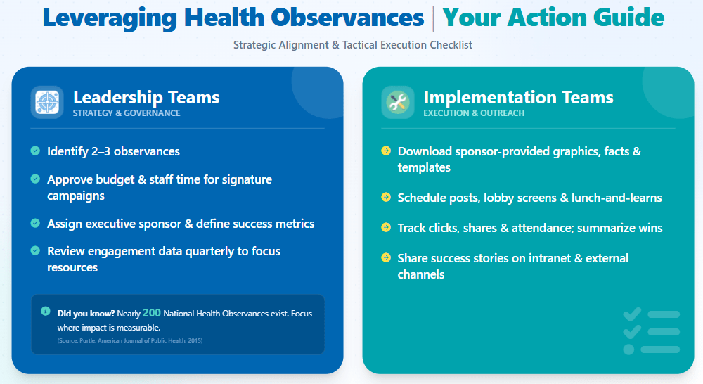 Every month we share a guide to next month’s Healthcare Awareness Observations. It includes easy-to-access, curated resources you can use to implement internal or external awareness campaigns.